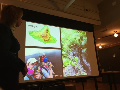 At this WINGS WorldQuest Explorer Talk, Sophie provided a unique look into a complex and diverse culture accompanied with artifacts and paintings from her expedition. She taught us about their custom dances, water music, sand drawing, and sacred pig ceremonies. We enjoyed a rare visual photographic and artistic documentation of a vanishing way of life in the South Pacific.